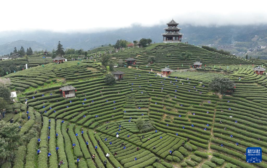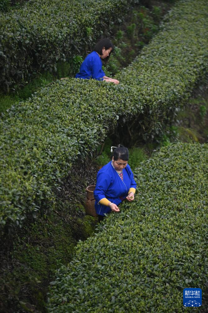 3月14日,柳州市三江侗族自治县八江镇布央村的村民在采茶。
