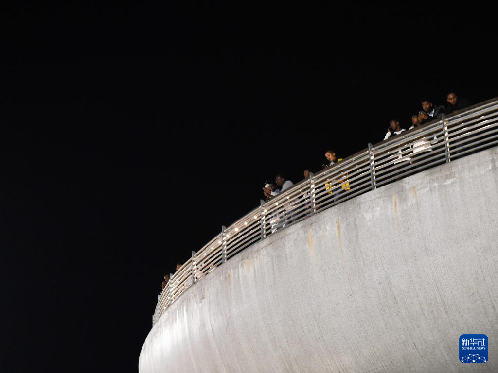 这是2月18日在埃塞俄比亚首都亚的斯亚贝巴友谊广场拍摄的光影秀。