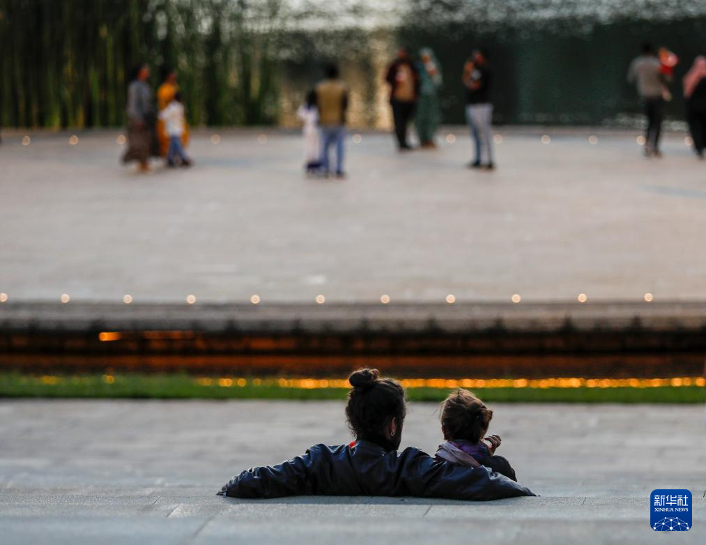 2月18日,在埃塞俄比亚首都亚的斯亚贝巴,游客们在友谊广场欣赏音乐喷泉。