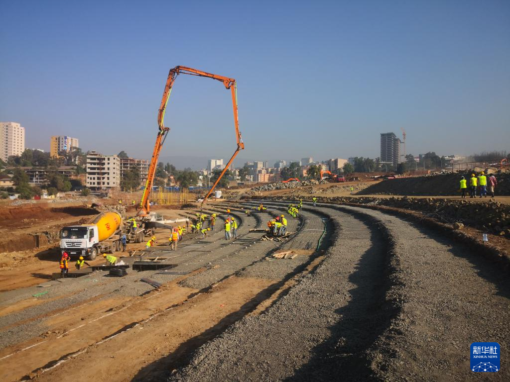 这是2019年12月6日在埃塞俄比亚首都亚的斯亚贝巴拍摄的友谊广场施工现场。