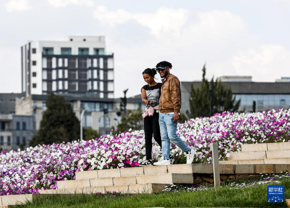 2月18日,在埃塞俄比亚首都亚的斯亚贝巴,游人在友谊广场游玩。