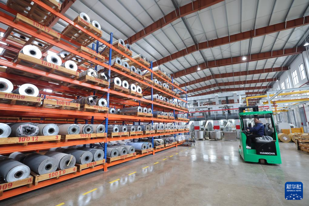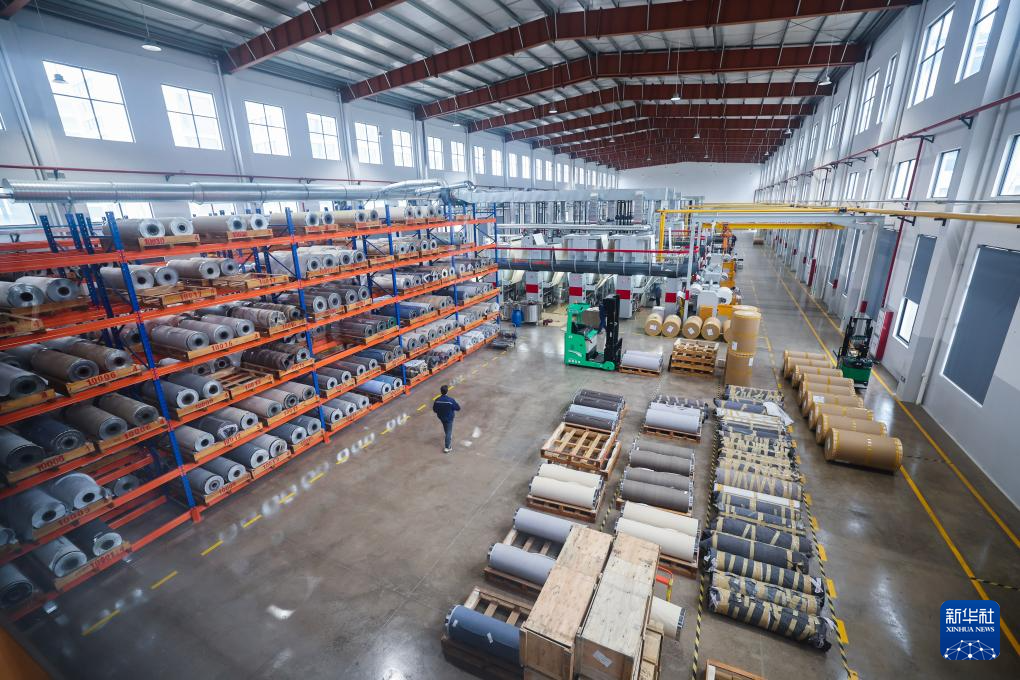 3月14日,杭州市临安区一家装饰纸生产企业工人在生产车间赶制订单。