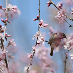 3月15日,一只小鸟在天津桃花堤的桃树枝上休憩。