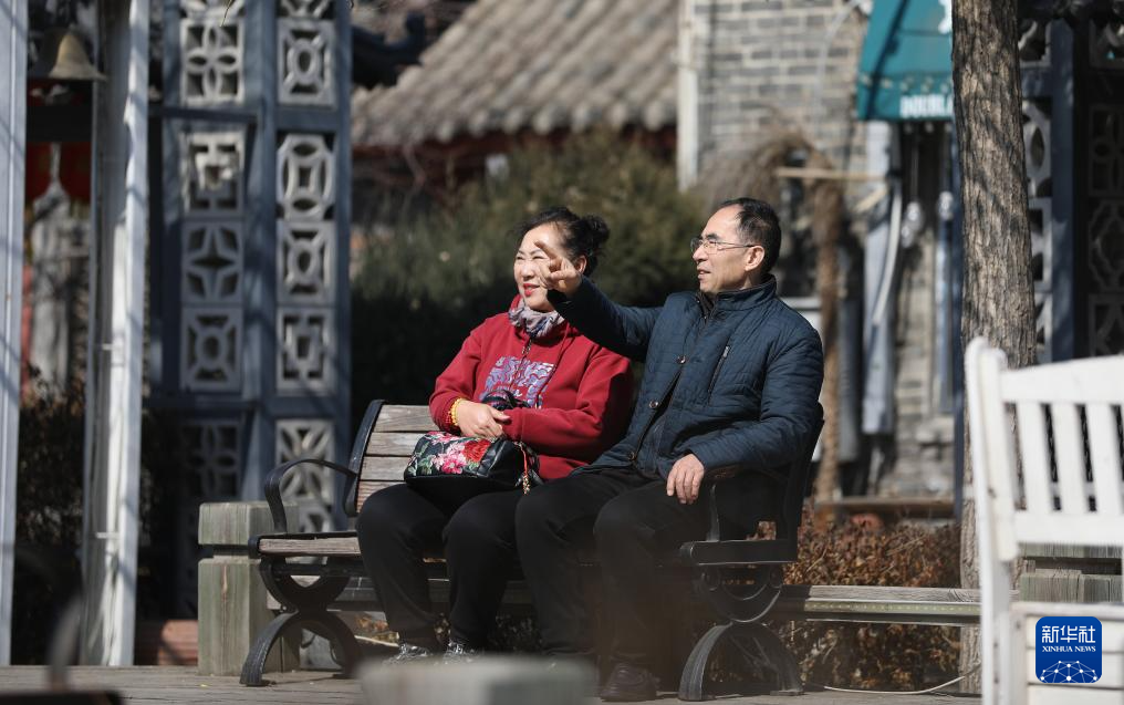 3月13日午饭后,陈群厚(右)和妻子在营口辽河老街的长椅上休息。
