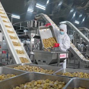 近年来,地处燕山脚下的河北省遵化市依托当地板栗、鲜桃、核桃、山楂等果树资源丰富的特点,大力发展农产品深加工产业,引导扶持食品龙头企业制作加工栗仁、核桃仁、水果罐头等食品,助推山区绿色经济发展,助力乡村振兴。