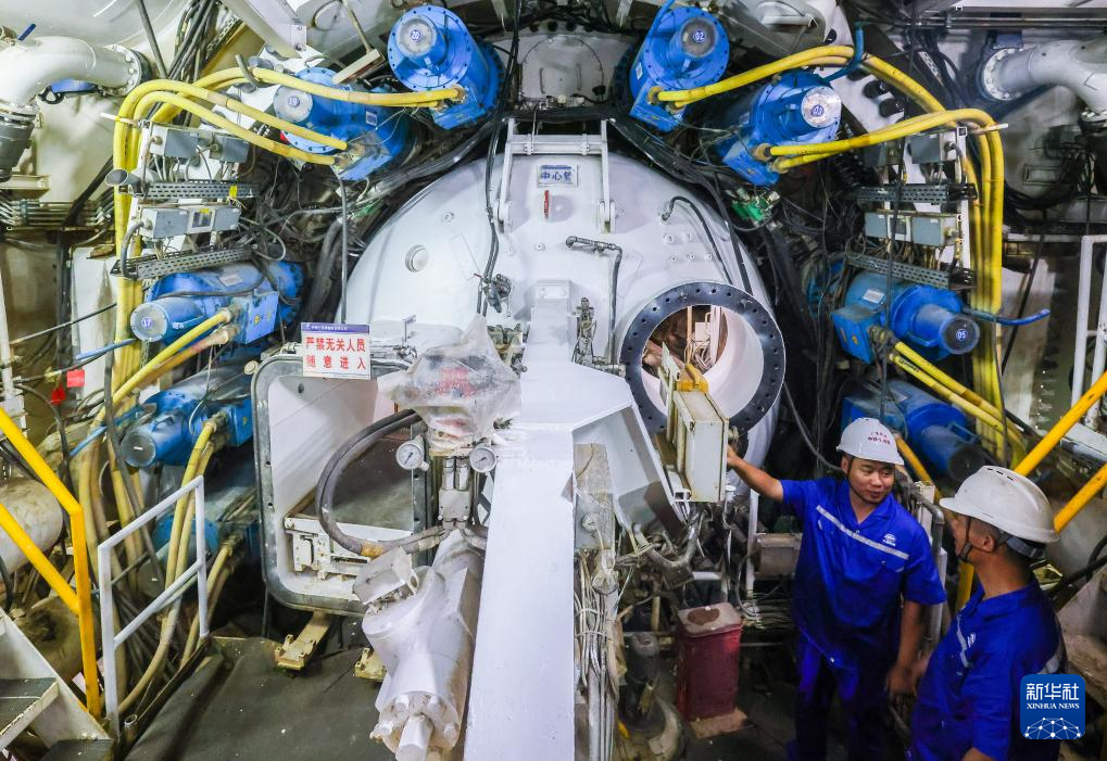 3月15日,技术员在广湛高铁湛江湾海底隧道盾构机内检查设备工作状态。