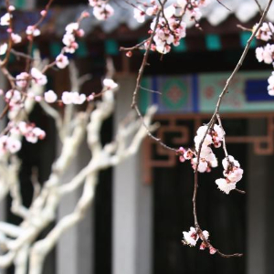 3月16日,游客在江苏省扬州市何园景区赏花拍照。