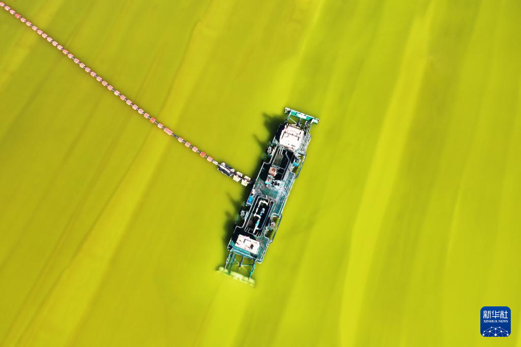3月14日,在位于格尔木的青海盐湖工业股份有限公司钾肥分公司,采盐船在盐湖工作(无人机照片)。