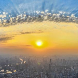 这是3月12日在广州拍摄的景色,夕阳和晚霞宛若天空之眼(无人机照片)。