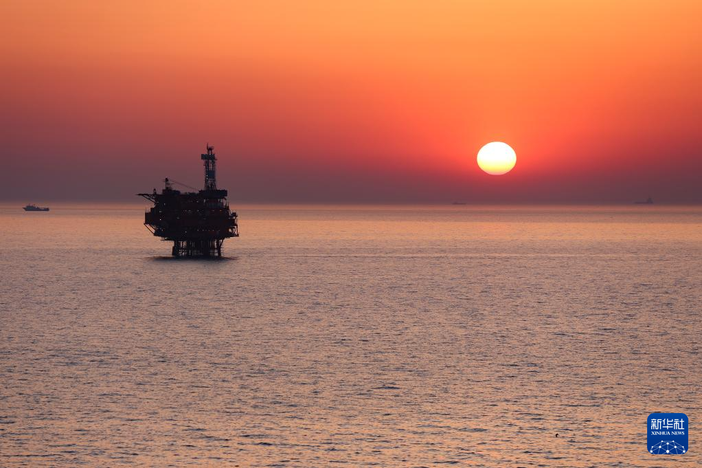 晨光中的秦皇岛32-6油田(3月8日摄)。