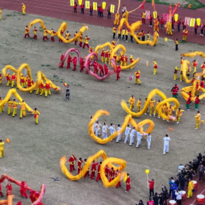 3月16日,板板龙灯队伍在慈利县人民广场进行舞龙表演(无人机照片)。