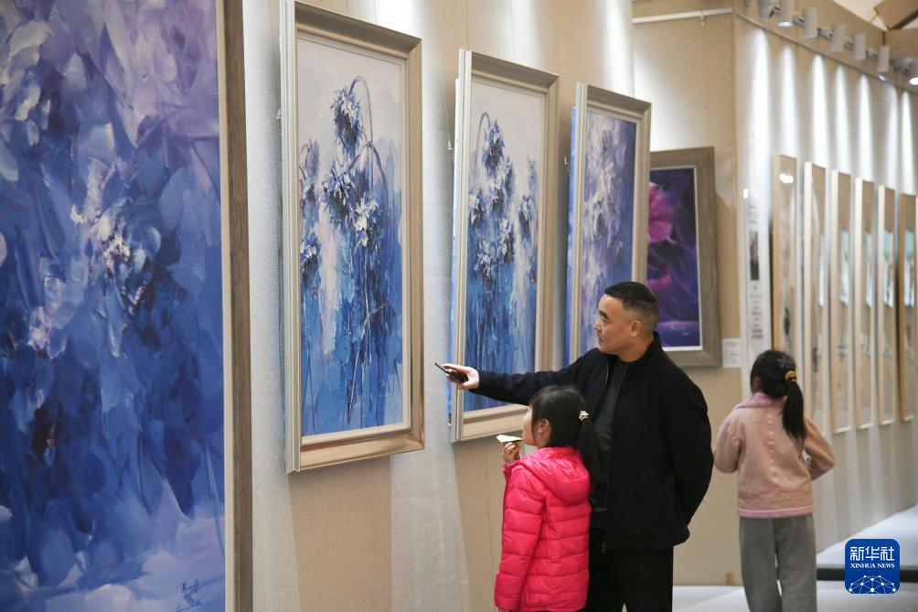 3月16日,游客在东林村“艺术家走进乡村”书画摄影名家邀请展上参观。