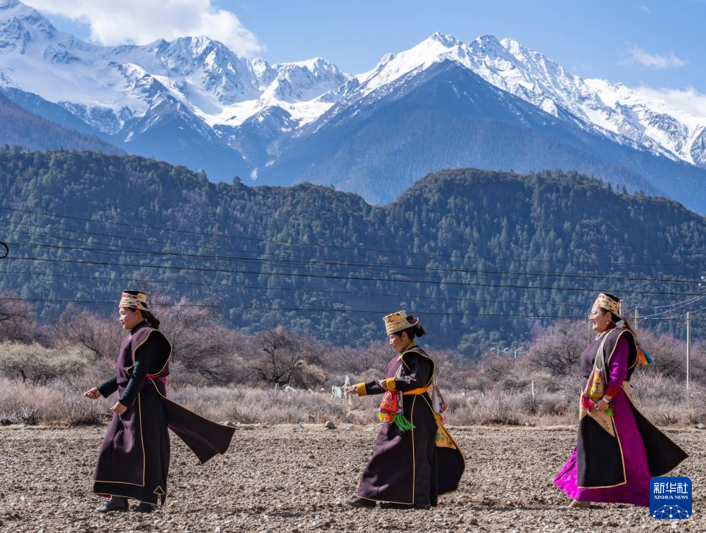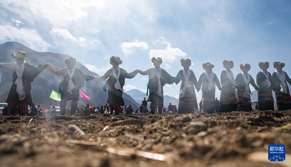 这是3月16日拍摄的西藏林芝市工布江达县巴河镇秀巴村的春耕仪式现场。