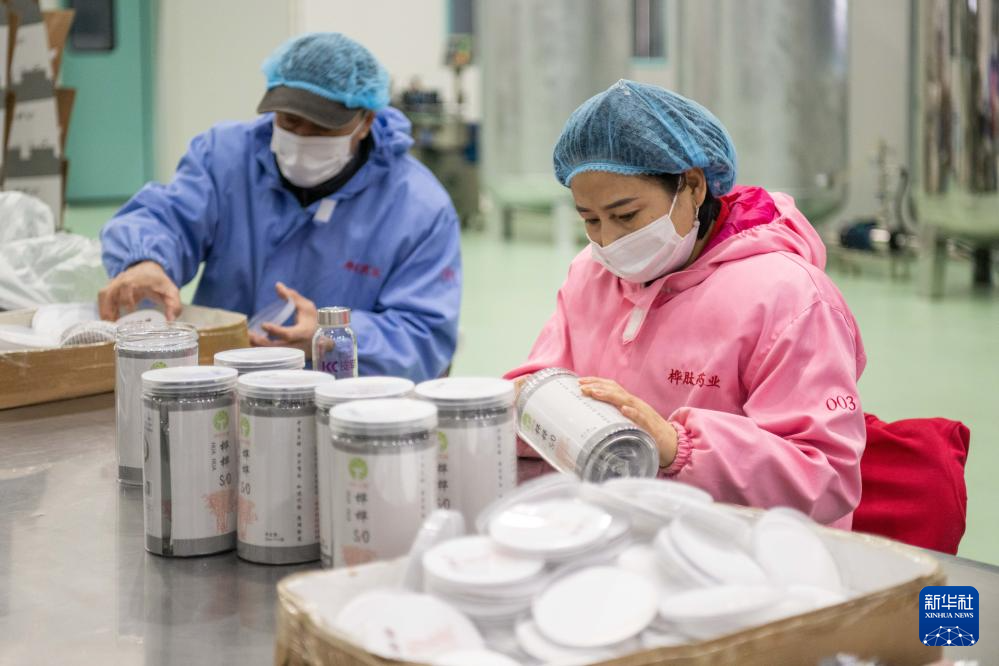 3月12日,在伊春桦肽生物药业有限公司,工作人员在包装桦树汁相关产品。