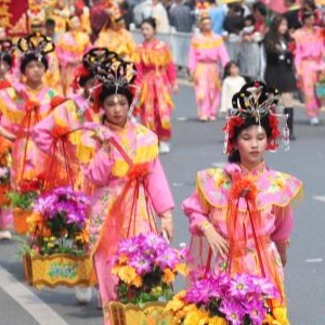 3月17日,花灯队在汕头市潮阳区“第十一届潮阳双忠文化节”巡游中表演。