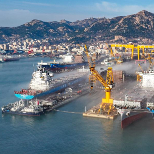 今年以来,山东省荣成市石岛管理区修造船基地的造船企业开足马力,抢赶工期,船坞内呈现出一派繁忙的景象。