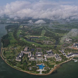 在博鳌近零碳示范区拍摄的博鳌亚洲论坛会议中心及酒店改造项目(3月17日摄,无人机照片)。