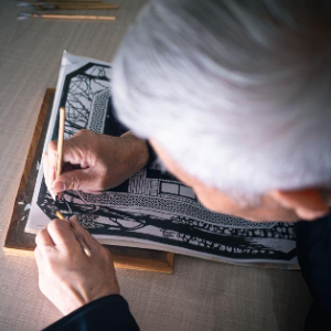 卢发良是乐清细纹刻纸省级传承人、浙江省级工艺美术大师。1972年,他拿起画笔与刻刀,开始从事细纹刻纸的创作。50多年的积累使他在细纹刻纸的创作中不局限于传统题材,大胆创作了一系列反映时代与现实、充满地域文化特征的作品,设计各类细纹刻纸画稿千余幅。