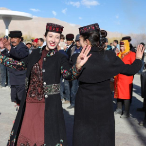 3月19日,人们在新疆塔什库尔干塔吉克自治县瓦尔希迭村跳舞庆祝。