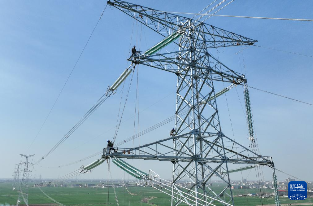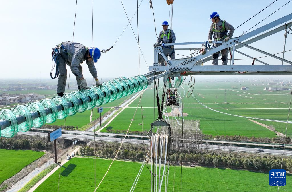 开春以来,电力工人抢抓春季有利天气,奋战在施工一线,确保安徽电网重点工程进度有序推进。