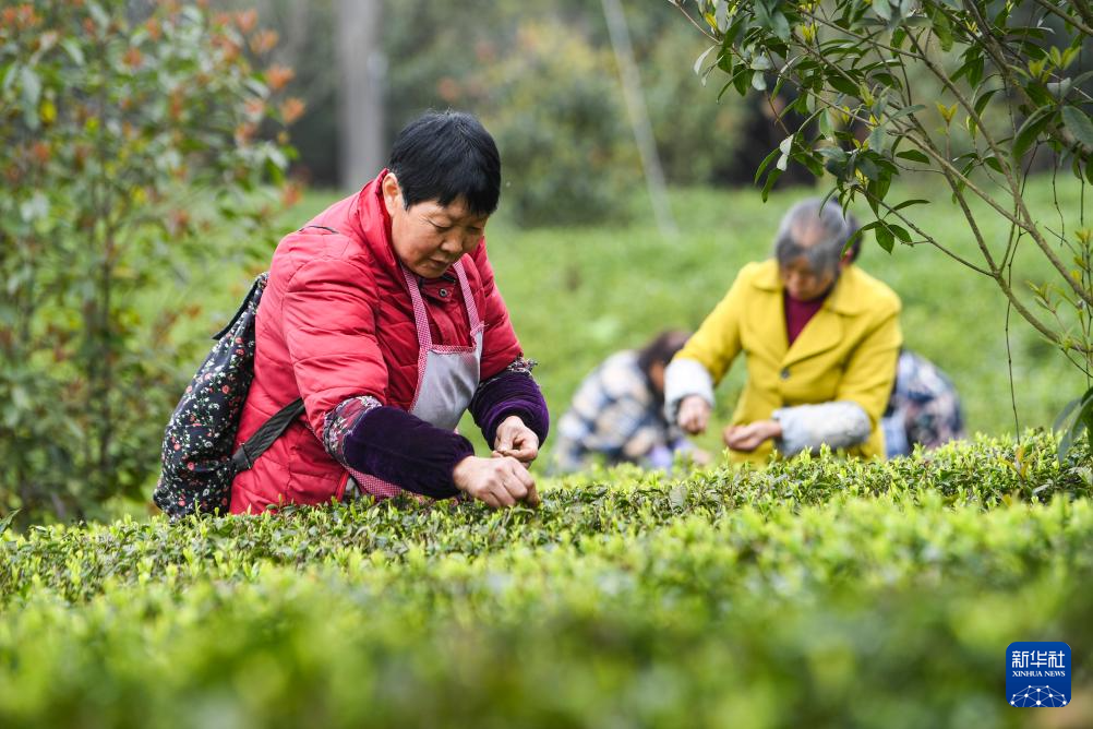 3月19日,茶农在重庆市永川区大安街道花果山村茶园采摘春茶。
