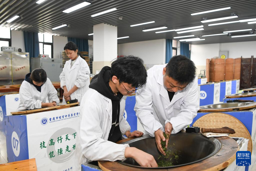 3月19日,重庆市经贸中等专业学校茶叶生产与加工专业的学生在练习制茶技艺。