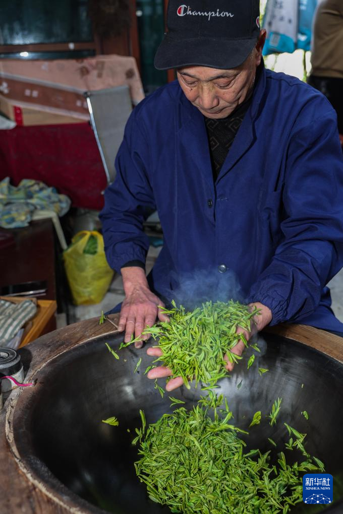 3月20日,梅家坞村的茶农在手工炒制首批西湖龙井“明前茶”。