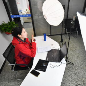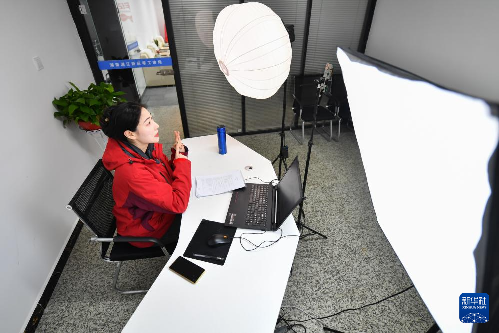 3月20日,在湖南湘江新区零工市场,工作人员在“直播带岗”。