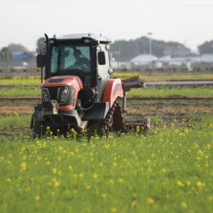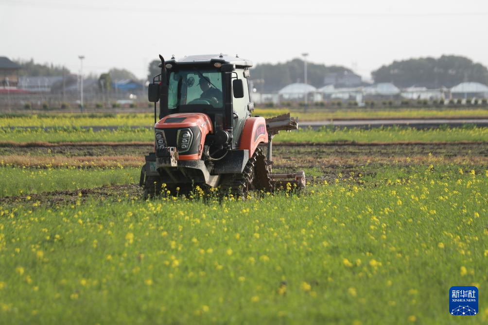 3月19日,在谢家铺镇港中坪村,村民驾驶农机翻耕田地。