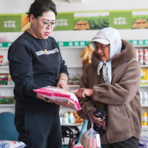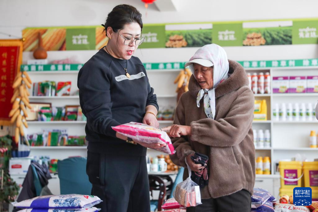 3月21日,在阜新蒙古族自治县王府镇,农户在一家农资商店选购种子。