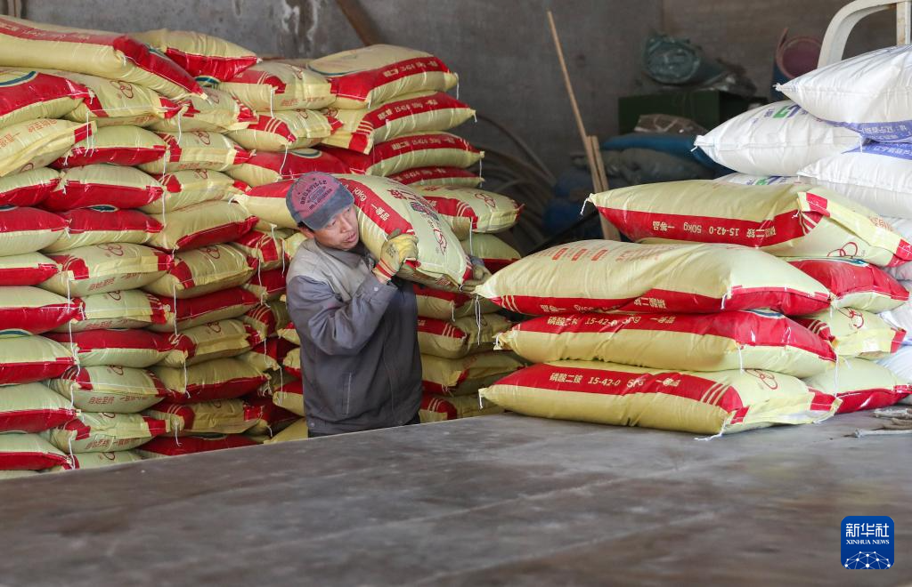 春分时节,在辽宁省阜新市阜新蒙古族自治县王府镇,农户忙着购买农资,田间地头的灌溉工程也在加紧施工中,为春耕做准备。