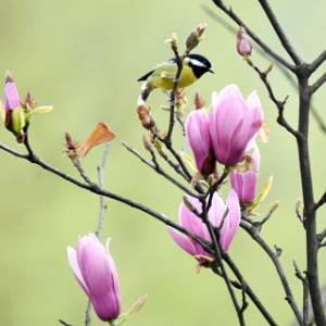 3月19日,贵州省仁怀市楠竹林公园,小鸟在玉兰花间停歇。