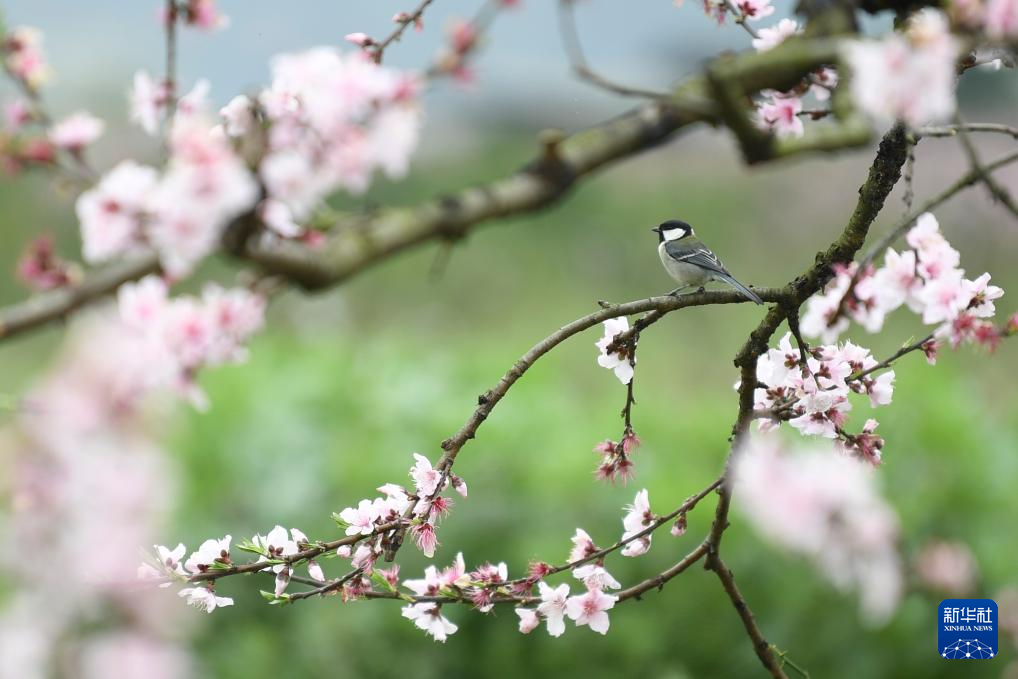 3月20日,小鸟在贵州省遵义市余庆县子营街道上里社区桃花树上停歇。