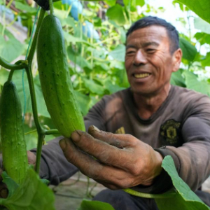 3月19日,种植户在宁安镇兴盛村种植黄瓜的温室内忙碌。
