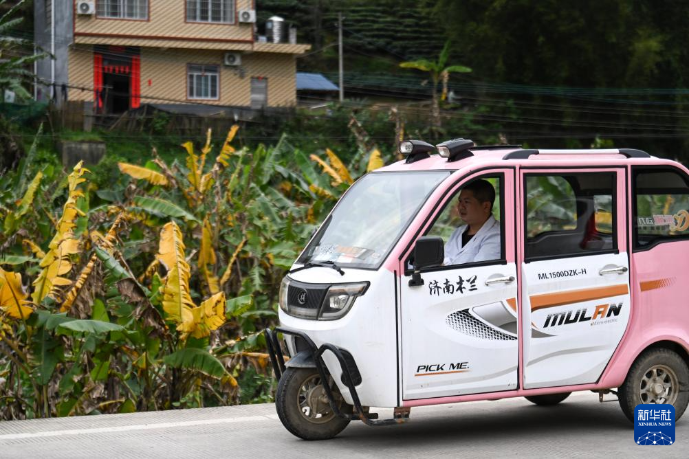 3月20日,在广西昭平县昭平镇玉河村,李荣坚在出诊路上。