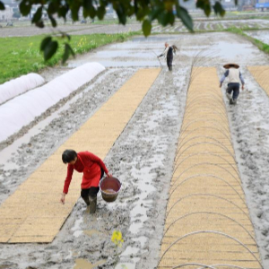 3月21日,在湖南省衡山县白果镇,村民进行早稻育秧管护作业(无人机照片)。