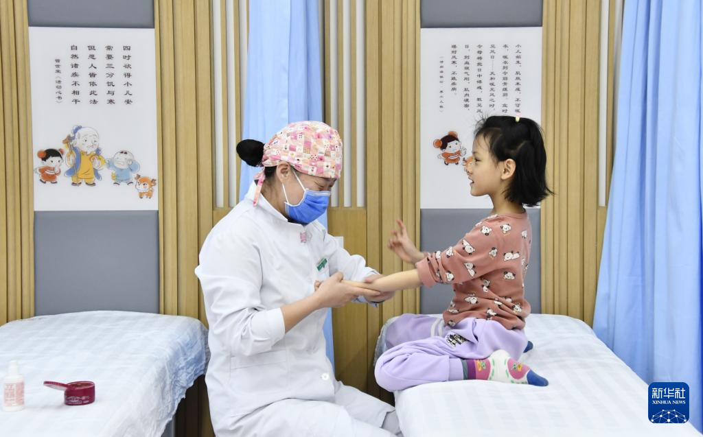 朝阳区东风社区卫生服务中心中医在为孩子进行推拿按摩(3月19日摄)。