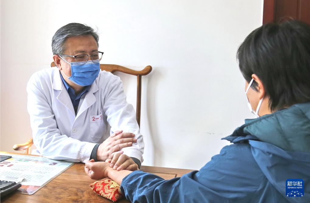 朝阳区东风社区卫生服务中心石佛营东里社区卫生服务站的中医为居民诊脉(3月19日摄)。