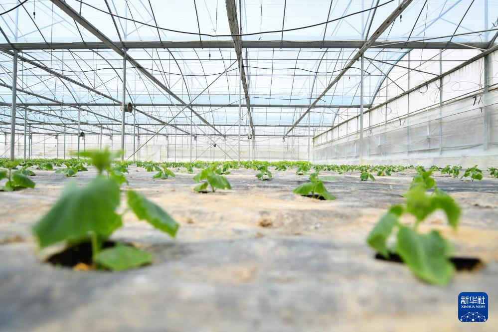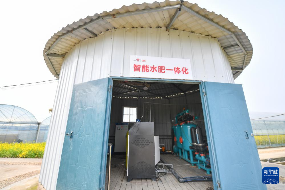 这是3月22日在湘潭市雨湖区姜畲镇棋盘村拍摄的智能蔬菜温室大棚,棚内装有智能水肥一体化系统。