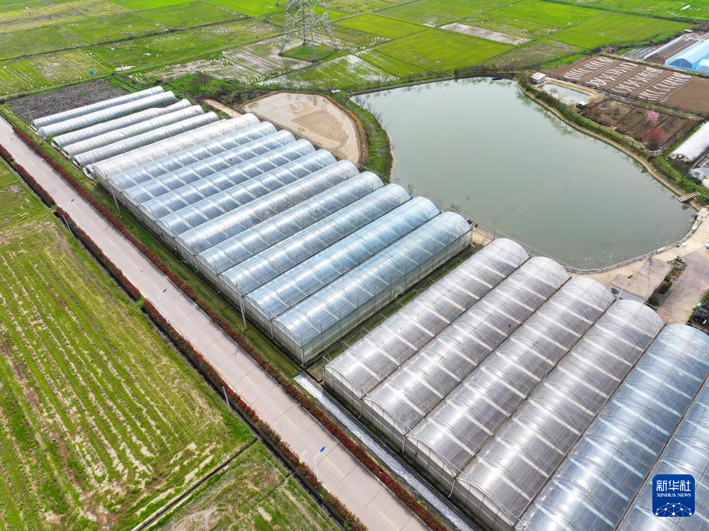这是3月22日在湘潭市雨湖区姜畲镇棋盘村拍摄的智能蔬菜温室大棚(无人机照片)。