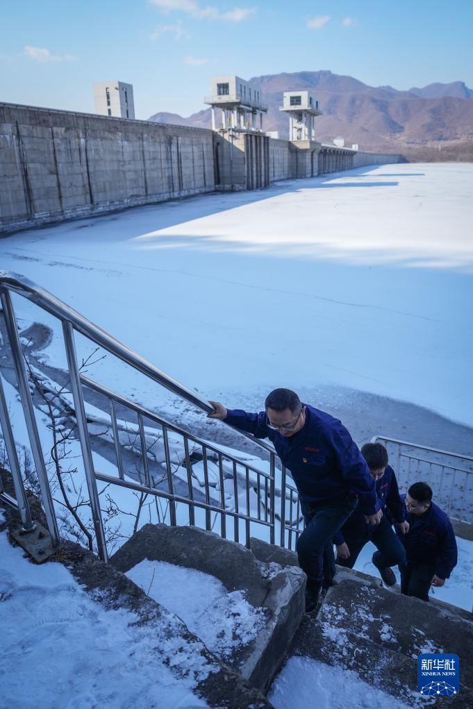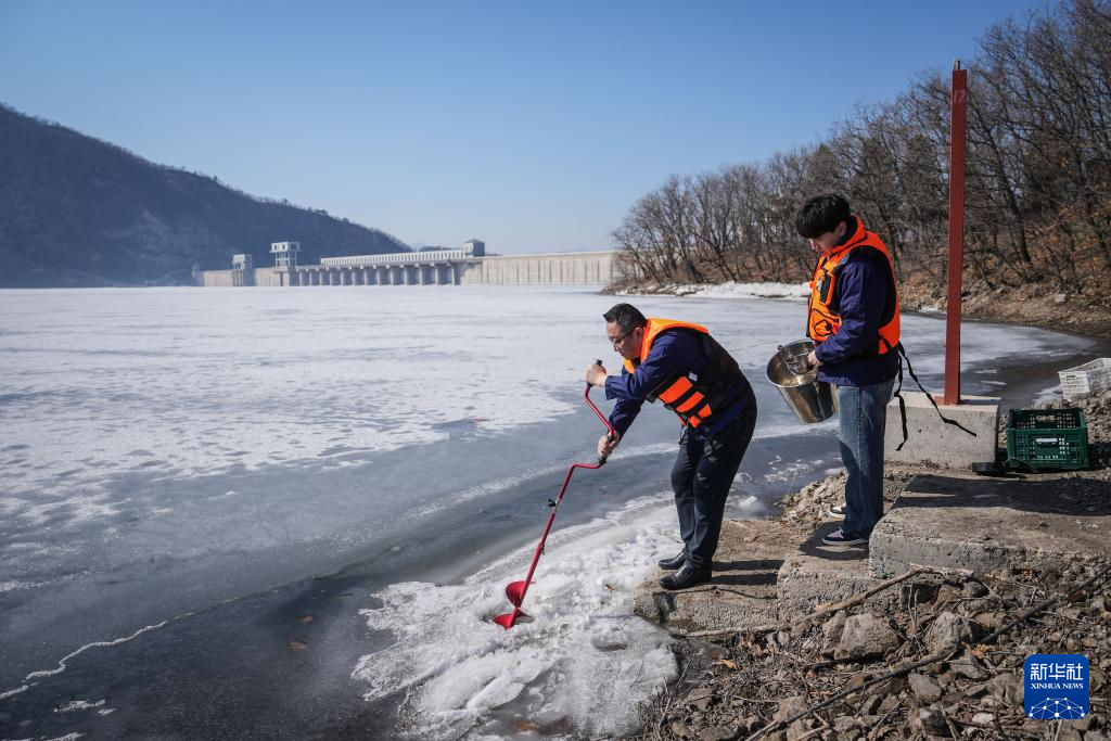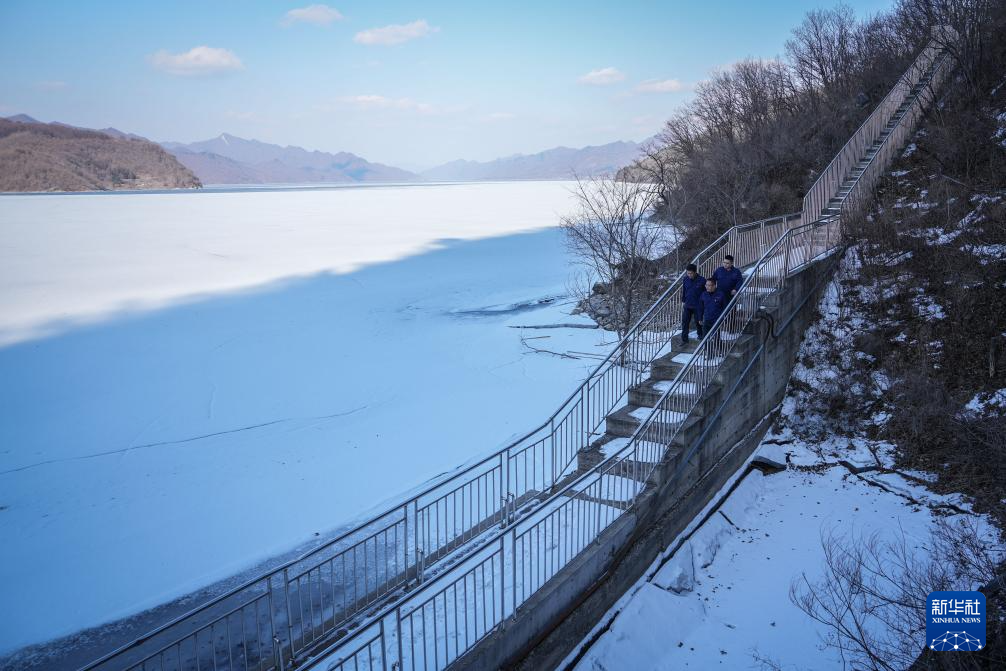 3月20日,崔兵(前)与同事前往水库内的水质在线监测站查看监测数据。