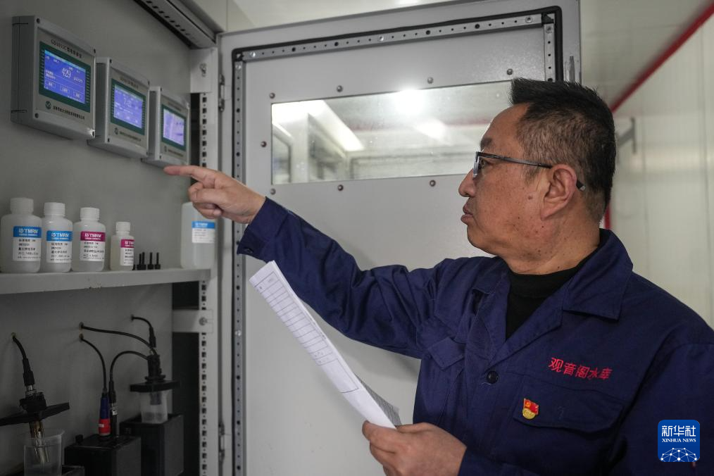 3月20日,崔兵在水库内的水质在线监测站查看监测数据。