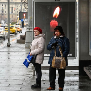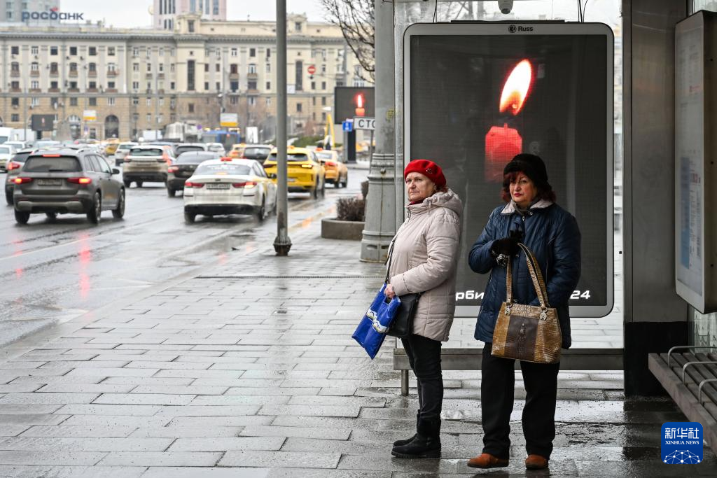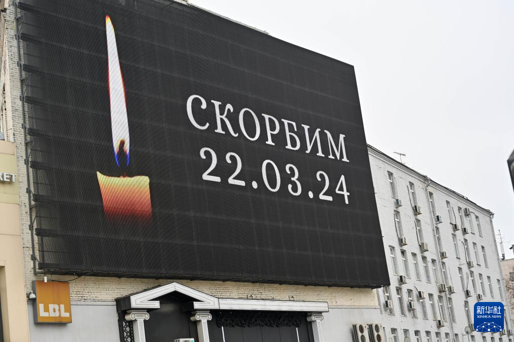3月23日,俄罗斯首都莫斯科街头的广告牌播出蜡烛图案,悼念莫斯科近郊恐袭事件遇难者。