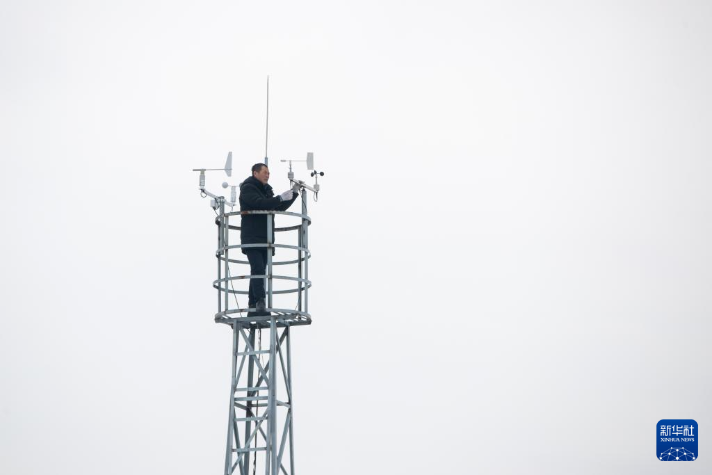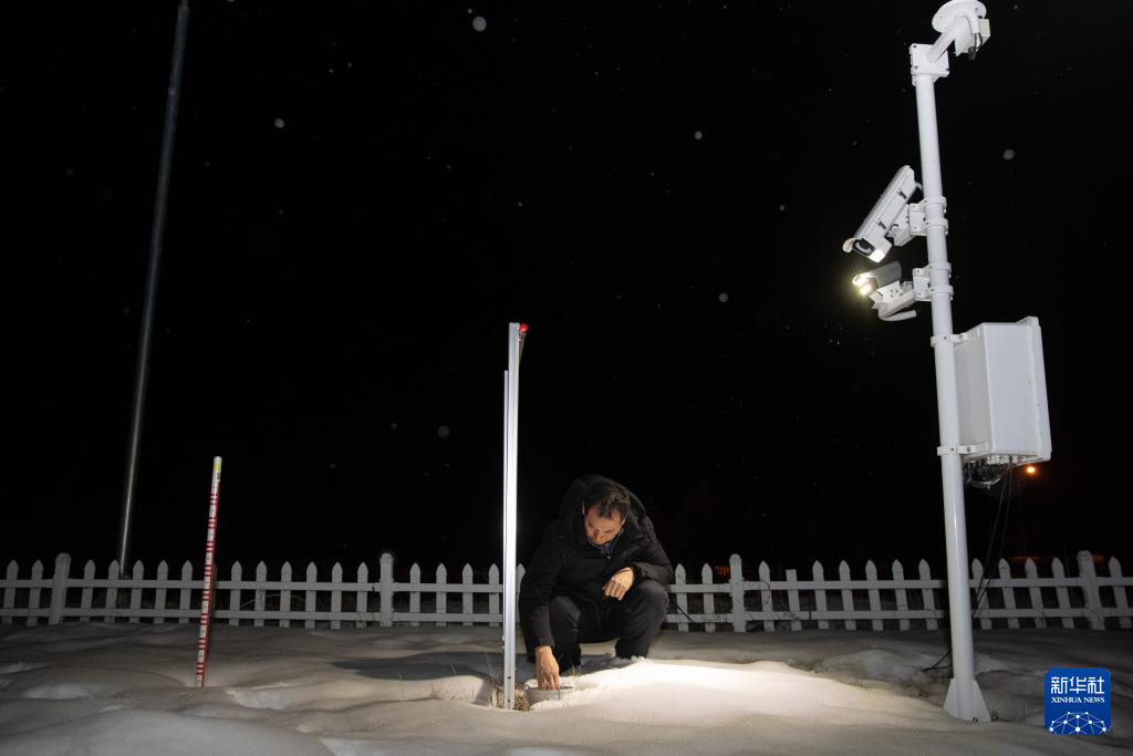 3月23日,北极村国家基本气象站内,王长春在雪后巡检设备。