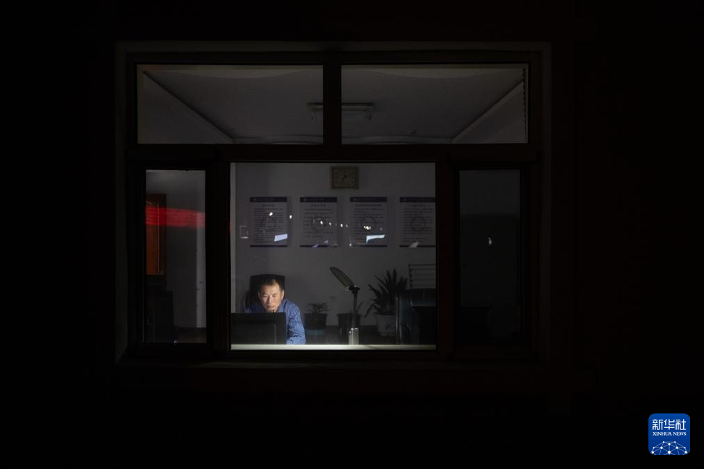 3月22日,在北极村国家基本气象站内,郭大勇监测气象数据。