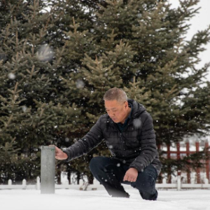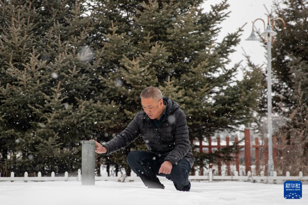 3月23日,曲波在北极村国家基本气象站内测量雪厚。
