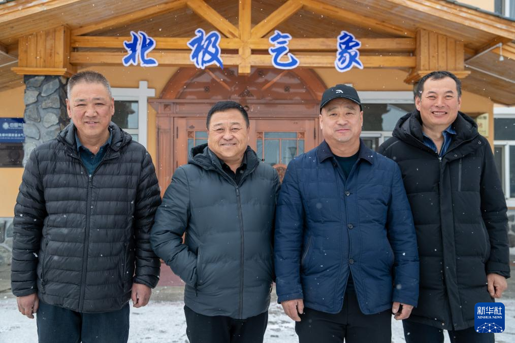 3月23日,在北极村国家基本气象站内,曲波、冯显华、王长春、郭大勇拍摄合影(从左至右)。