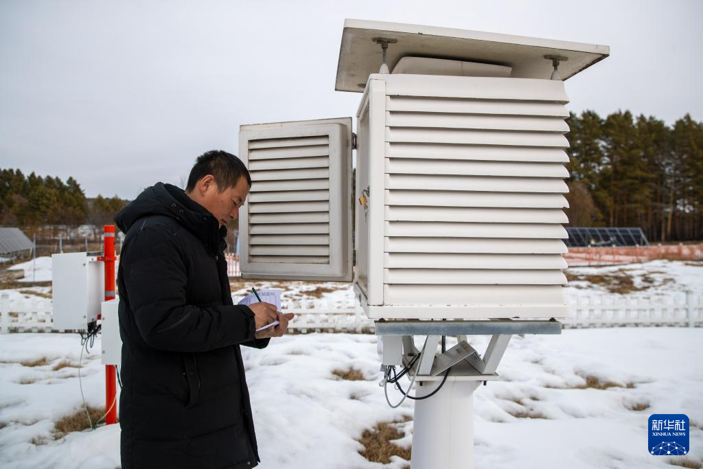 3月22日,北极村国家基本气象站内,郭大勇在巡检设备。