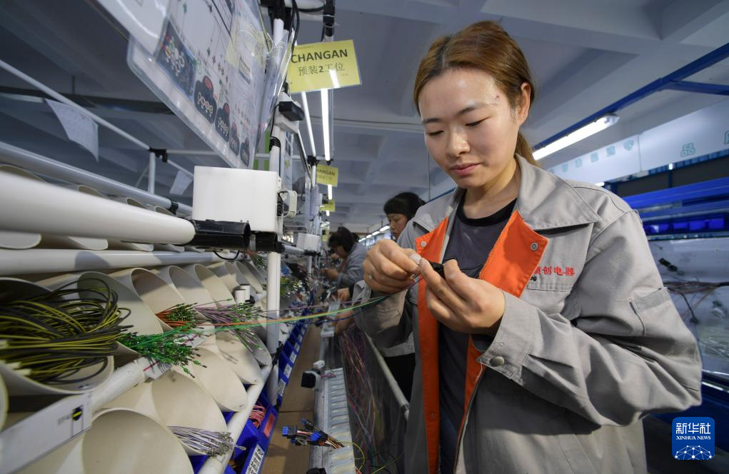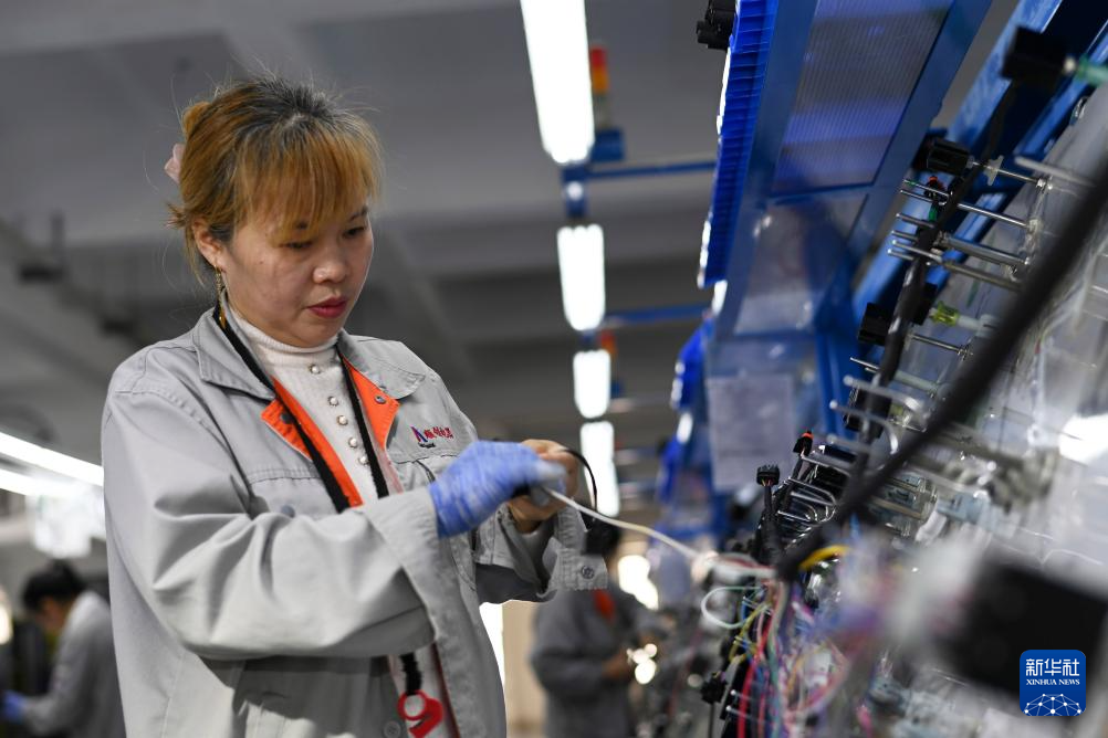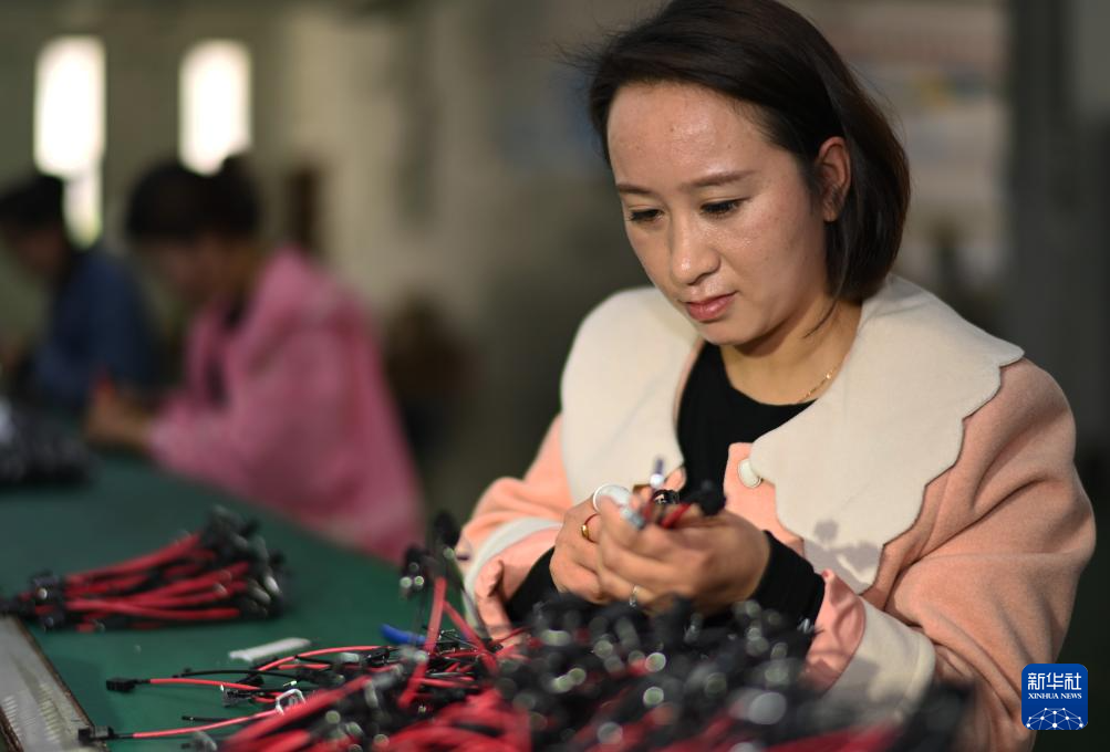 3月23日,工人在道真仡佬族苗族自治县上玉工业园区一家生产汽车线束总成的企业组装线束总成。