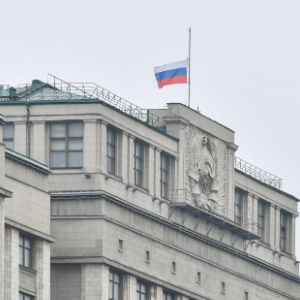 3月24日,在俄罗斯莫斯科,俄国家杜马大楼降半旗。